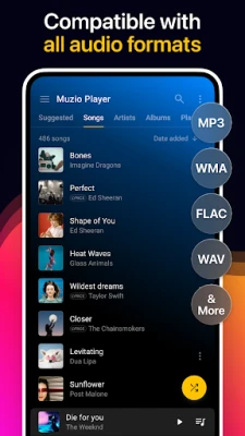 Muzio Player is not just any MP3 player but one that can play songs of any format. This offline player supports audio formats like MP3, WMA, MIDI, WAV, FLAC, AAC, APE etc, giving you a worry free music experience.